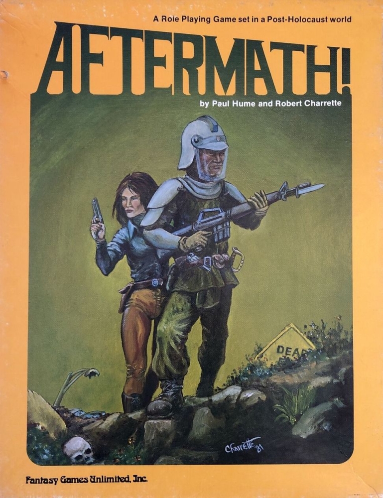 Aftermath! je jedna z prvních postapokalyptických RPG her – nebo, jak se sama označuje, „hra zasazená do světa po holokaustu“. Odehrává se po blíže nespecifikované katastrofě a úkolem postav je hledat jídlo, vodu, základní zásoby, přístřešek a přežít.