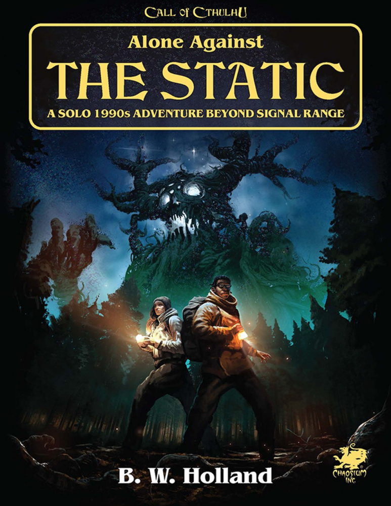 Alone Against the Static je sólové dobrodružství pro sedmou edici Call of Cthulhu (2020), zasazené do devadesátých let dvacátého století. Jeho protagonisty je manželský pár, který kvůli záchraně rozpadajícího se vztahu vyrazí na víkend na odlehlou chatu. Při sledování staré videokazety ovšem vypustí cosi, co mělo zůstat skryto… Příběh prozkoumává motivy žalu, izolace, vztahů a zlomených srdcí. Hráč ho může prožít za obě postavy.