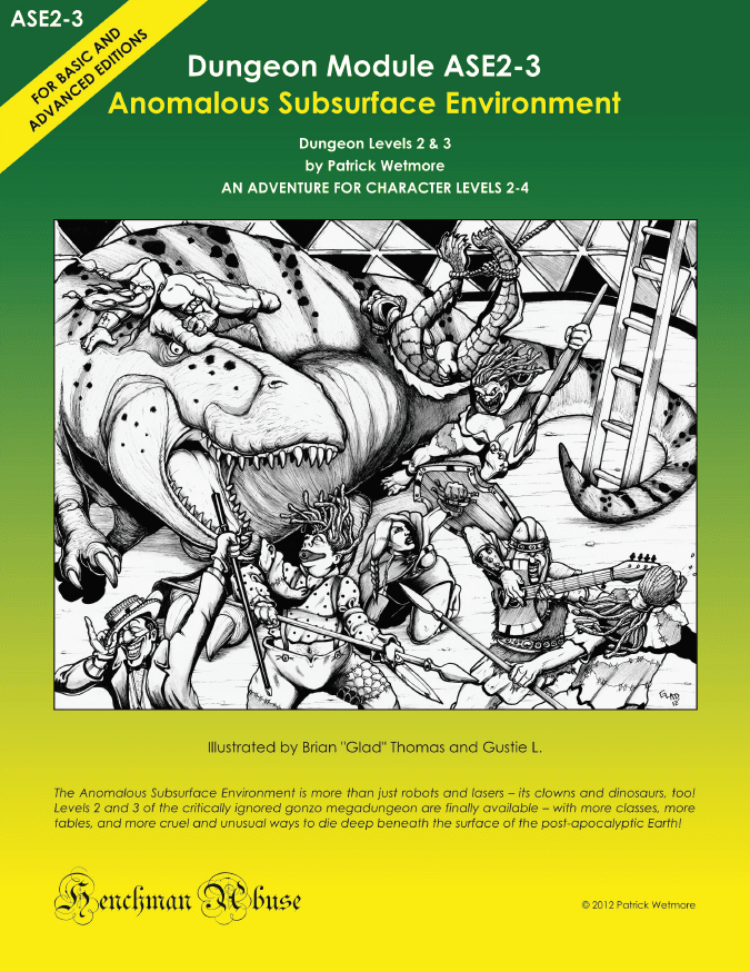 ASE2–3: Anomalous Subsurface Environment: Dungeon Levels 2 & 3 je rozšíření „gonzo“ medagungeonu, jehož první patro a okolní svět byly popsány v modulu ASE1: Anomalous Subsurface Environment: City of Denethix and Dungeon Level 1 (2011). Modul ASE2–3 doplňuje dungeon o druhé a třetí patro. Zároveň přináší i nová povolání postav, různé doplňující tabulky a spoustu nových způsobů, jak můžou postavy v podzemí postapokalyptické Země potupně zahynout.