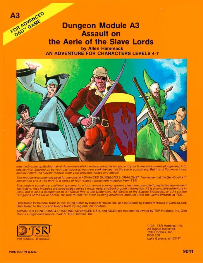 A3: Assault on the Aerie of the Slave Lords je třetí ze série čtyř dobrodružství, ve kterých se hráči utkají se silami otrokářů. Je určené pro dobrodruhy na 4. až 7. úrovni v Advanced Dungeons & Dragons (1978). V první části hrdinové pronikají sérií jeskyní (dungeon) do skrytého města, které se nachází v jícnu sopky. Druhá část se odehrává ve městě, které se skládá z necelých 70 popsaných lokací, a pokračuje výpravou do stok, které jsou opět pojaté jako dungeon. Dějově je zasazeno mezi A2: Secret of the Slavers Stockade (1981) a A4: In the Dungeons of the Slave Lords (1981).