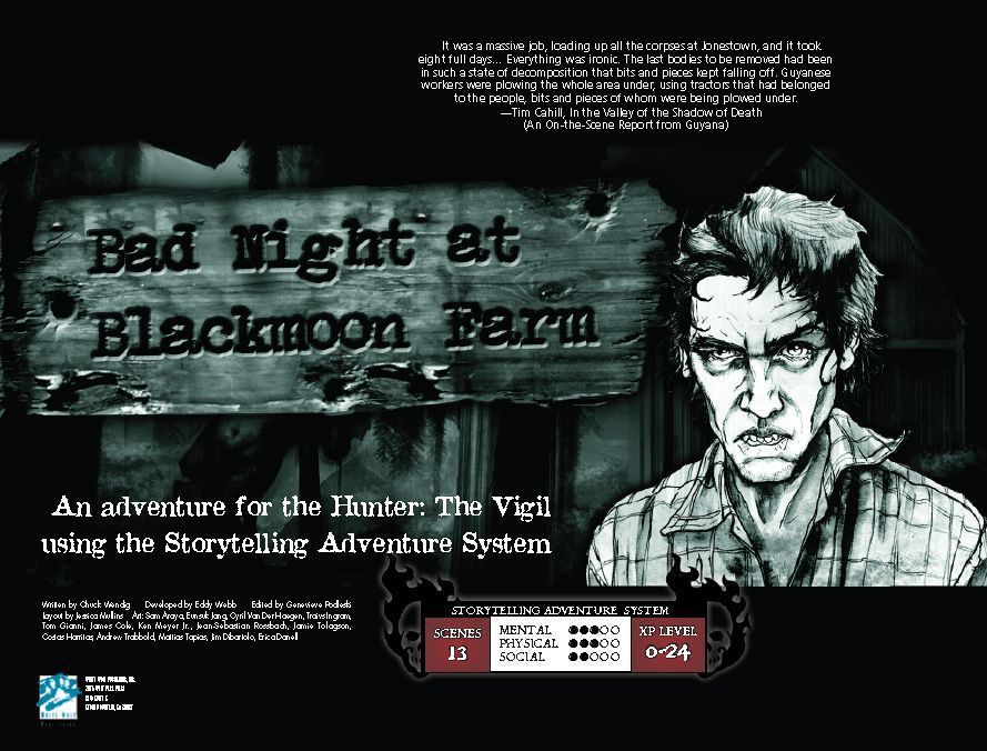 Bad Night at Blackmoon Farm je scénář pro první edici Hunter: The Vigil (2008) napsaný podle stylu SAS. Skupina lovců se vydá prozkoumat osamělou farmu, jejíž obyvatelé se očividně izolují od okolního světa. Vhodné pro začínající postavy.