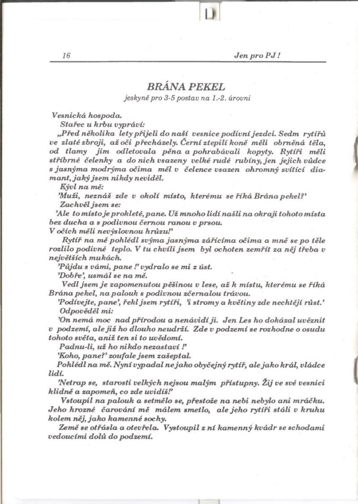 Brána pekel je klasické dobrodružství, či chcete-li jeskyně, jak vypadaly na počátku hraní Dračího doupěte (1990) u nás.
