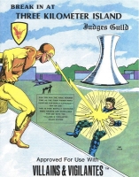 Break In At Three Kilometer Island je první (a skoro jediné) dobrodružství publikované pro první edici superhrdinské hry Villains and Vigilantes (1979). Zápletka se točí kolem jaderné elektrárny na titulním Tříkilometrovém ostrově, kam se vloupala čtveřice superzáporáků, kteří tu hledají novou látku zvanou „asimtot“ s cílem vyrobit z ní novou supermocnou bombu a ovládnout svět. Hráči musejí probíhající vloupání zastavit a tím svět zachránit. Dobrodružství má 16 stran.