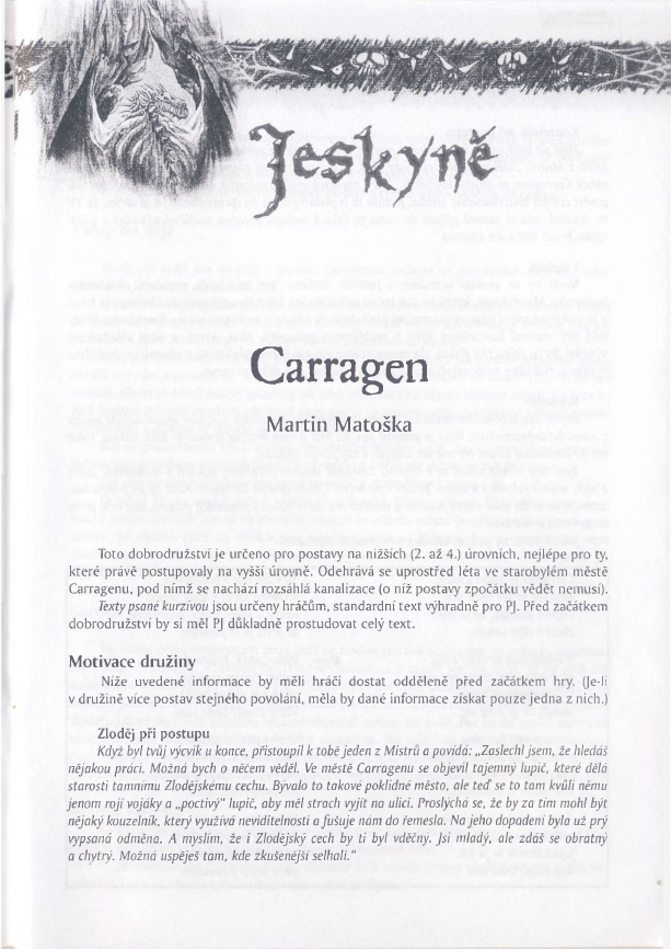 Carragen je klasické městské detektivní dobrodružství určené pro postavy na 2. až 4. úrovni v Dračím doupěti (1990). Hrdinové jsou svými učiteli těsně po přestupu na vyšší úroveň požádáni, aby dopadli tajemného, magií nadaného zločince ve městě jménem Carragen, který dělá špatné jméno jejich cechům.