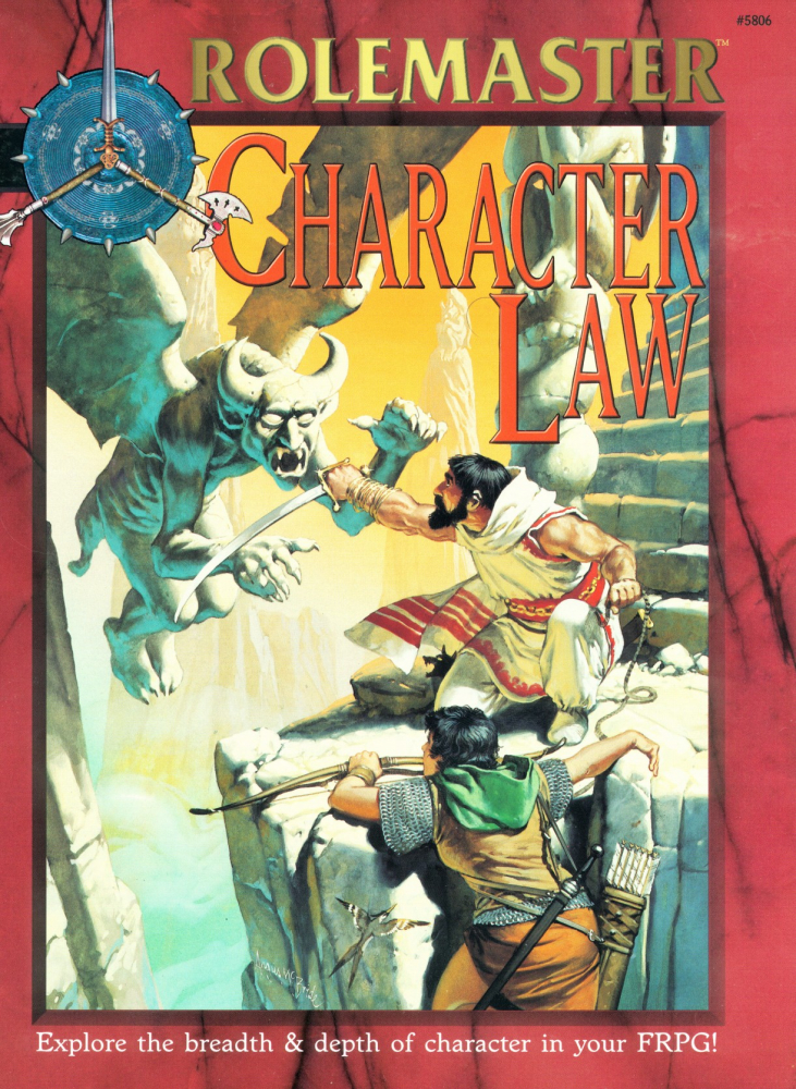 Character Law je jedna ze základních knih Rolemasteru ve verzi Fantasy Role Playing (RMFRP). 128stránková příručka přináší nové možnosti postav a oproti základní příručce více než zdvojnásobuje počet dostupných profesí a ztrojnásobuje počet dostupných kultur. Přináší taky řadu nových tréninkových balíčků, dovedností a jiných možností přizpůsobení postavy a popisuje úplně nový systém na generování minulosti postavy, včetně náboženství, rodiny, kultury, jedinečného charakteru atd.
