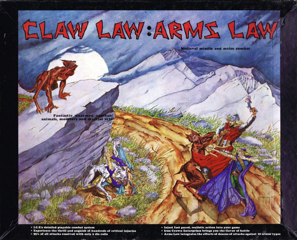 Claw Law:Arms Law je doplněk pro „fantasy RPG hry“ (čímž se myslí konkrétně první edice Advanced Dungeons & Dragons (1978)), ze kterého se později stal základ samostatné hry Rolemaster (1982). Nahrazuje původní soubojový systém AD&D novým, „realističtějším“ systémem založeným na procentuálních hodech se složitými tabulkami, které porovnávají různé typy zbraní proti různým typům zbrojí a jemně rozlišují různé výsledky. Zároveň přidávají do hry i kritické zásahy, kumulativní vliv zranění, fyzickou zdatnost bojovníků, modifikátory za pozici a řadu dalších faktorů.