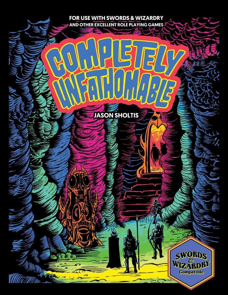 Completely Unfathomable je 280stránkové dobrodružství a herní prostředí pro Swords & Wizardry (2008) v žánru bizarní fantastiky. Jde o souborné vydání tří dříve publikovaných produktů: podzemního dobrodružství Operation Unfathomable (2018) a nadzemního světa Odious Upplands (2022). Kromě těchto dvou hlavních částí obsahuje toto vydání i materiál publikovaný ve volitelném hráčském průvodci Operation Unfathomable Players' Guide (2018).