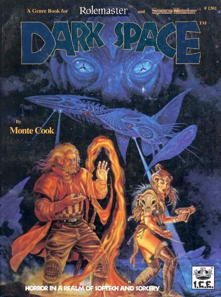 Dark Space je rozšiřující žánrová příručka pro Rolemaster (1982) nebo Space Master (1985) z prostředí, ve kterém se míchají žánry science fantasy a horroru. Kniha popisuje herní svět dvořený dvaceti planetami v různých soustavách, kde náboženské čistky eliminovaly většinu „tvrdých technologií“ jako počítače, roboty a stroje, ale s požehnáním církve došlo k rozvoji „měkkých technologií“ jako plastů nebo biotechnologií. Mezi planetami tak plují plastové lodě s masivními biologickými mozky a „rozšířeními“ v podobě jiných připojených tvorů.