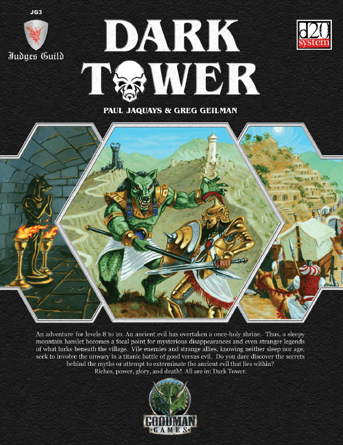 JG3: Dark Tower je dobrodružství pro dobrodruhy na 8. až 10. úrovni, pro tříapůltou edici D&D (2003). Jedná se o konverzi a dílčí aktualizaci legendárního dobrodružství Dark Tower (1979). Tak jako v originále přicházejí hrdinové vyšetřovat báje a záhadná zmizení do vesničky v horském průsmyku, až proniknou do podzemního komplexu. Jde o rozsáhlý dungeon o více než 100 popsaných lokacích rozdělených do čtyř hlavních pater a několika menších mezipater, který se vyznačuje netradiční strukturou – popisuje dvě věže znesvářených bohů Mitry a Seta, které byly před dávnými časy zavaleny sesuvem půdy. Pozdější generace vykopaly mezi oběma věžemi různé průchody a sály, čímž vznikla nezvyklá nelineární mapa: dva svislé dungeony (věže) a mezi tím patra tradičních vodorovných prostor. A na povrchu nad tím vším tábor hledačů pokladů, do kterého zrovna přicházejí hráčské postavy. Vzniká dynamické prostředí se znepřátelenými frakcemi a spoustou prostoru k průzkumu.