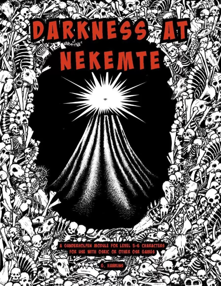 Darkness at Nekemte je 52stránkové dobrodružství v žánru temné sword & sorcery pro postavy na 5.–6. úrovni ve hře OSRIC (2006) nebo jiných retroklonech D&D. Popisuje zaniklé pyramidové město hadích lidí v bažinách, kde se pod jednotlivými pyramidami (těch je kolem 20) nacházejí menší kobkya z některých je možné sestoupit hlouběji do klasického dungeonu o zhruba 50 popsaných lokacích.