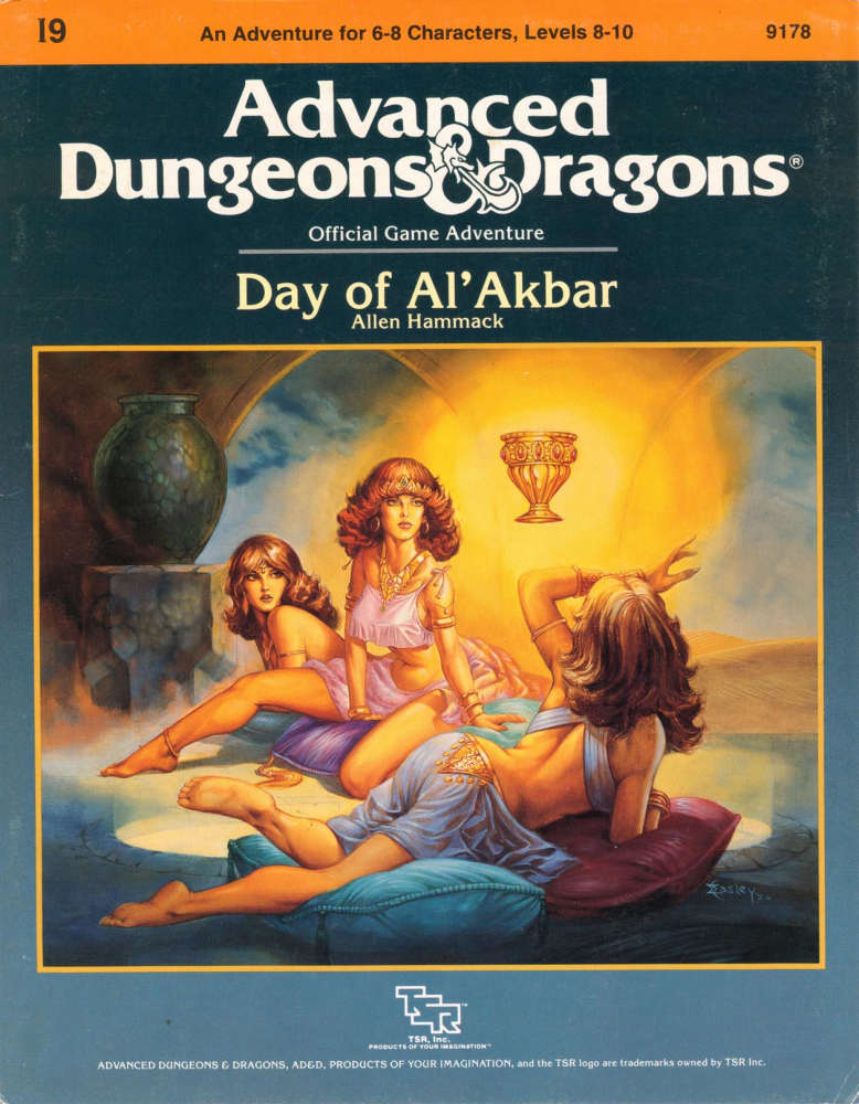 I9: Day of Al'Akbar je 40stránkové dobrodružství určené postavám na 8. až 10. úrovni v Advanced Dungeons & Dragons (1978), deváté ze série I – Intermediate. Dobrodruzi mají za úkol přinést z města ovládaného bandity dva artefakty, Al'Akbarův pohár a talisman, bez kterých nelze vytvořit lék na rudý mor. Putují přes poušť (kombinace náhodných setkání a tří naskriptovaných událostí) a v utajení proniknou do města skrz stoky a hrobku (dungeon o 26 očíslovaných místnostech). Další část dobrodružství spočívá ve volném průzkumu města (36 popsaných lokací), závěr je uzavřený opět do dungeonu, Sultánova paláce (27 očíslovaných místností).