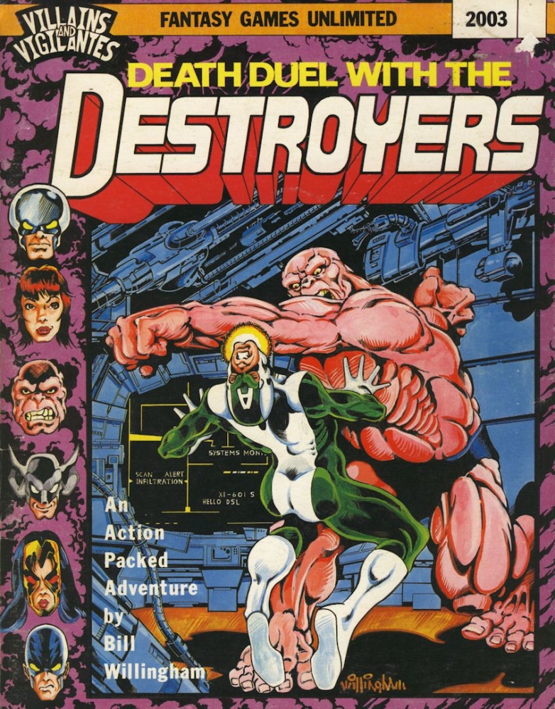 Death Duel with the Destroyers je dobrodružství pro superhrdinskou hru Villains and Vigilantes. Spojené státy zasáhne několik katastrofálních bouří, ke kterým se holograficky přihlásí superzáporák Dr. Apocalypse. Hráčští superhrdinové se nejdřív musejí vypořádat s obřím robotem útočícím na New York a potom se střetnou se skupinou padouchů známou jako The Destroyers. Autor dobrodružství Bill Willingham později stejné záporáky The Destroyers použil v komiksové sérii Elementals.