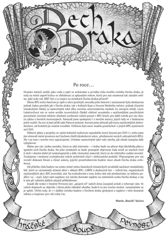Číslo „hráčského doupěte Pevnosti“ – dříve samostatného časopisu Dechu Draka, nyní přílohy časopisu Pevnost.