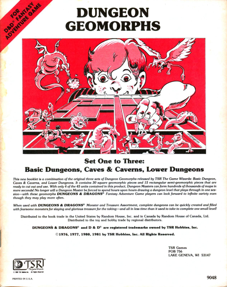 Jde o druhé, souborné vydání. Tabulky původně vyšly ve třech svazcích jako Dungeon Geomorphs Set One: Basic Dungeon (1976), Dungeon Geomorphs Set Two: Caves & Caverns (1977) a Dungeon Geomorphs Set Three: Lower Dungeons (1977).