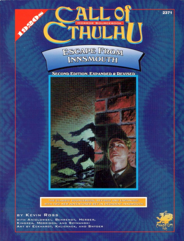 Druhé vydání Escape from Innsmouth je rozšíření pro staré edice Call of Cthulhu (1981). Toto druhé vydání je lehce rozšířenou verzí předchozího prvního vydání Escape from Innsmouth (1992). 176stránková kniha podrobně popisuje titulní Innsmouth, město známé z Lovecraftovy novely Stín nad Innsmoouthem a vystihuje jeho stav rok před vládní razií zachycenou v novele. Do kdysi prosperujícího obchodní města ležícího na severním pobřeží Massachusetts dřív připlouvaly plachetnice a na nedalekých ostrovech se těžilo zlato, ale teď v roce 1928 je město v úpadku a jeho nemocní obyvatelé jsou smutnými parodiemi lidí. První polovina knihy popisuje samotné město, jeho zajímavá místa, obyvatele a náměty na zápletky. Druhou tvoří připravené scénáře: