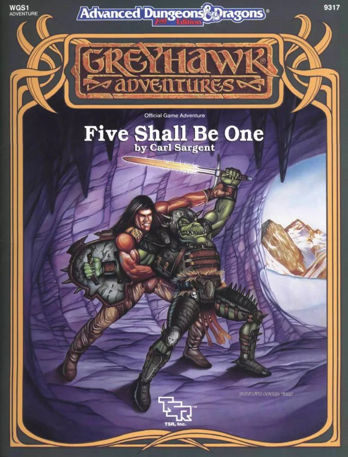 WGS1: Five Shall Be One je první ze série dvou příběhových dobrodružství, která otřásla světem Greyhawk a posunula jeho metaplot k výraznému rebootu. Je určené pro postavy na 7. až 10. úrovni ve druhé edici Advanced Dungeons & Dragons (1989). Postavy se vydávají ukořistit ztracené legendární zbraně, ale ukáže se, že tím ovlivní celý svět. Jedná se o víceméně předepsanou příběhovou sekvenci setkání nebo scén, včetně prolézání jeskyně a infiltrace města. Děj pokračuje dobrodružstvím v WGS2: Howl From the North (1991). Nový stav herního světa po této sérii zničujících událostí zachycuje základní sada From the Ashes (1992).