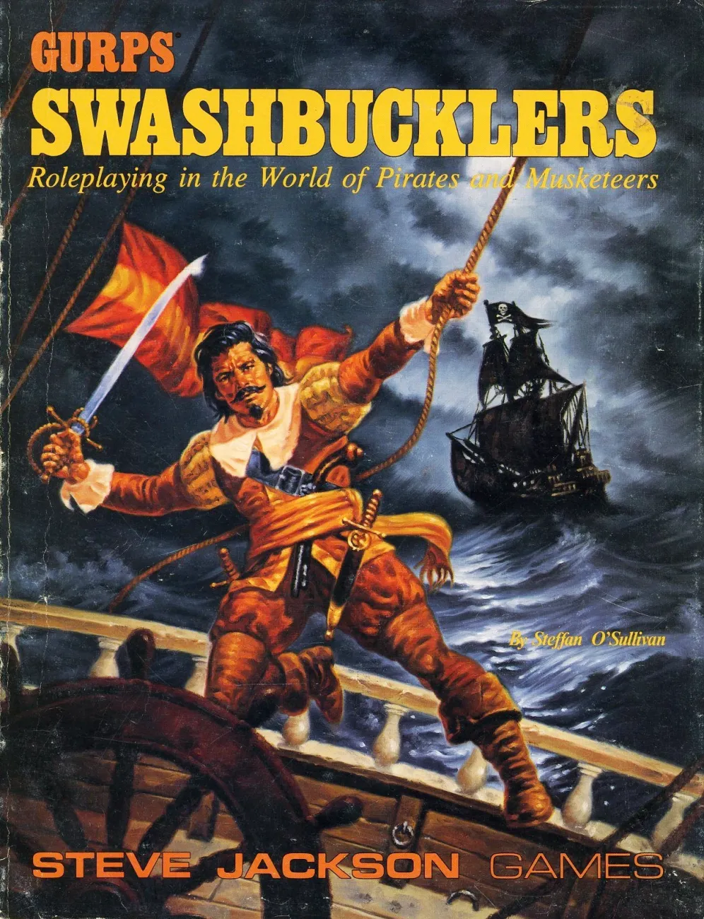 GURPS Swashbucklers s podtitulem Roleplaying in the World of Pirates and Musketeers je 96stránkové žánrové rozšíření pro třetí edici GURPS (1988), adaptující ji do období zámořských objevů, kdy moře brázdí plachetnice a pirátské koráby. Věnuje se období mezi lety 1559–1815 s důrazem na piráty z Karibiku, korzáry, mušketýry nebo všelijaké loupežníky. Popisuje nové možnosti pro tvorbu dobových postav, přináší pravidla pro plachetnice, zbraně na černý prach, šerm, houpání se na lustrech, kompulzivní hazard… Obsahuje taky přehled historického prostředí v letech 1559–1815: každodenního života v Evropě i v koloniích, plachetnic a mořeplavby, ekonomických aspektů pirátství a korzárství. Vypravěči nabízí náměty na zápletky z různých míst, od mušketýrské Francie přes karibská moře až po nebezpečné silnice Evropy. Obsahuje taky připravené profily významných organizací a osobností, jako je kardinál Richelieu nebo Černovous.