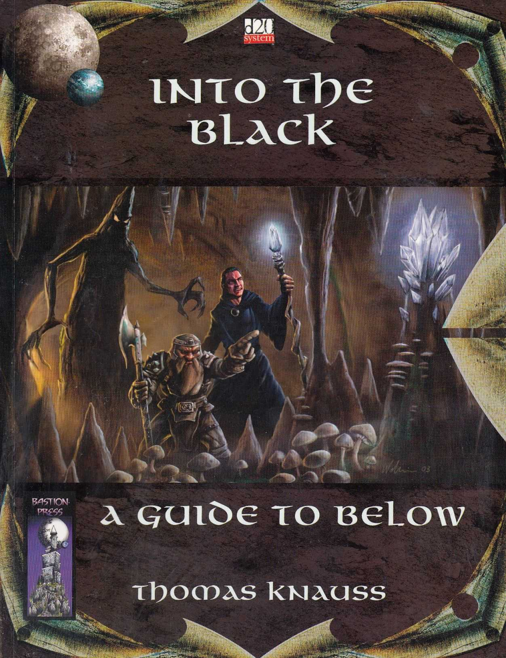 Into the Black: A Guide to Below je 96stránková příručka určená pro 3,5. edici Dungeons & Dragons (2003) (a potažmo systém d20), popisující rozličná podzemní prostředí a jejich obyvatele. Po obecném úvodu se věnuje postupně jeskyním, katakombám, stokám a dolům. Popisuje jejich typickou faunu a flóru, geologickou situaci, možná rizika a nakonec několik nestvůr, vždy s kompletními statistikami i krátkými náměty na dobrodružství. Poslední kapitolu knihy tvoří nové kouzelné předměty, materiály a kouzla.
