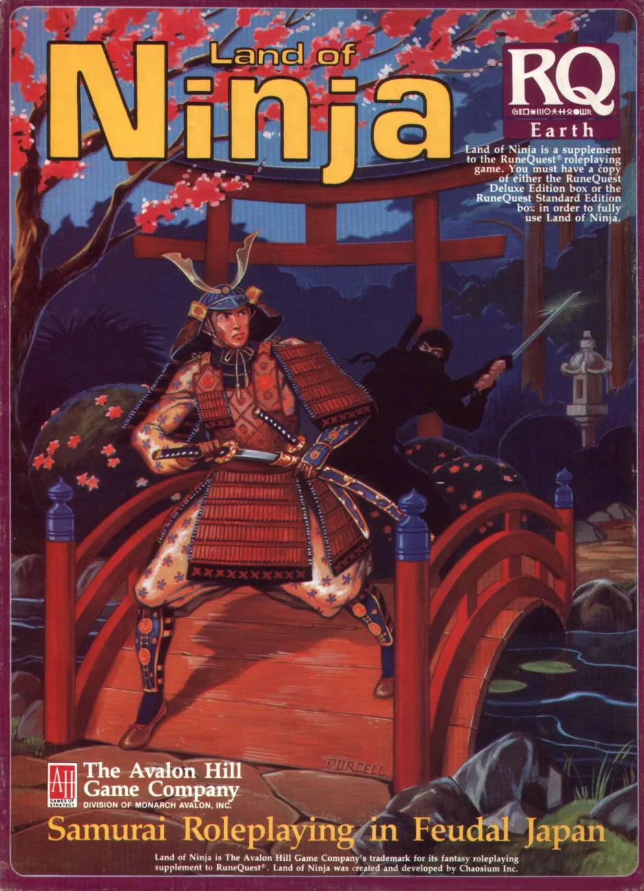 Land of Ninja s podtitulem Samurai Roleplaying in Feudal Japan je krabicové rozšíření pro třetí edici RuneQuestu (1984) z řady Fantasy Earth, která představuje různé oblasti a kultury fantastické obdoby středověké Země. Představuje zemi Nihon, autorskou interpretaci středověkého Japonska jako směsici historických materiálů s mýty a folklórem. Popisuje dobové reálie jako společenské postavení, samurajskou společnost, tradice nindžů, etiketu a další. Přináší vodítka pro tvorbu nihonských postav a nová pravidla pro věci jako čest, závazky giri, schopnosti čchi a nihonskou víru a magii. Nechybí ani lokální bestiář a pár připravených scénářů. Obsah krabice: