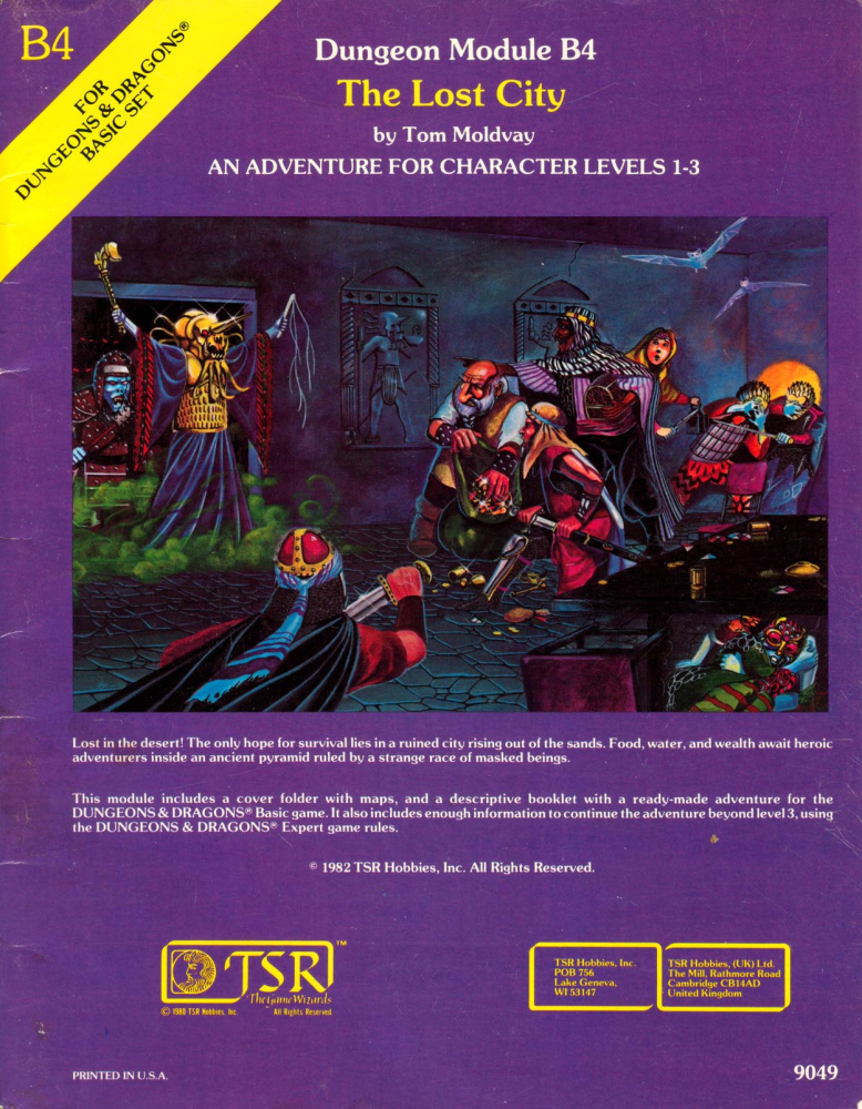 B4: The Lost City je dobrodružství pro postavy na 1. až 3. úrovni v Basic Dungeons & Dragons ve variantě B/X (1981). Soustředí na průzkum obrovské stupňovité pyramidy, jejíž podzemí klesá do starodávného podzemního města, které stihla katastrofa. Zatímco horní část podzemního komplexu je podrobně popsaná, ta dolní je pouze načrtnutá a samotné město je popsáno v podobě seznamu hlavních oblastí s mapou. Úhlavním nepřítelem dobrodružství je Zargon, obří monstrum s jedním okem a jeho přisluhovači. Celá pyramida, bez města, obsahuje přes 100 místností. Tento modul staré školy má několik pater a kromě různých hádanek, pastí a smrtících nástrah obsahuje i několik soupeřících frakcí.