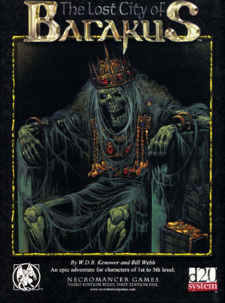 The Lost City of Barakus od Necromancer Games je dobrodružství pro d20 určené postavám na 1. až 2. úrovni, přičemž v rámci kampaně se dostanou až na 5. až 6. úroveň nebo vyšší. Modul obsahuje rozvržení města Endhome i s detailním popisy lokací a nehráčských postav, dále několik menších dobrodružství, na které postavy narazí ve městě. Také přes 20 lokací v okolní divočině. Poslední část se týká samotného města Barakus, které se skládá z 8 podzemních pater.