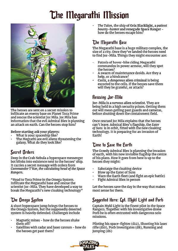 The Megarathi Mission je krátké dobrodružství pro hru Amazing Tales (2017) z prostředí Mezi hvězdami pro děti, které se nebojí infiltrovat vojenská zařízení a bojovat v epických vesmírných bitvách. Obsahuje zápletku a navrhovaného hrdinu.