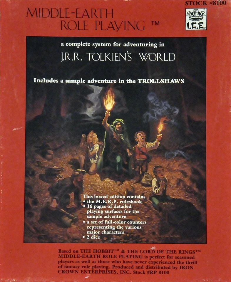 Původní základní krabice tolkienovské hry Middle-earth Role Playing (1984) přináší všechno potřebné ke hře. Obsahuje základní příručku (1984), která se prodávala i samostatně, a k ní další doplňky. Obsah krabice: