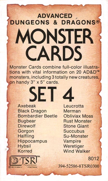 Čtvrtý balíček dvaceti karet nestvůr pro první edici AD&D