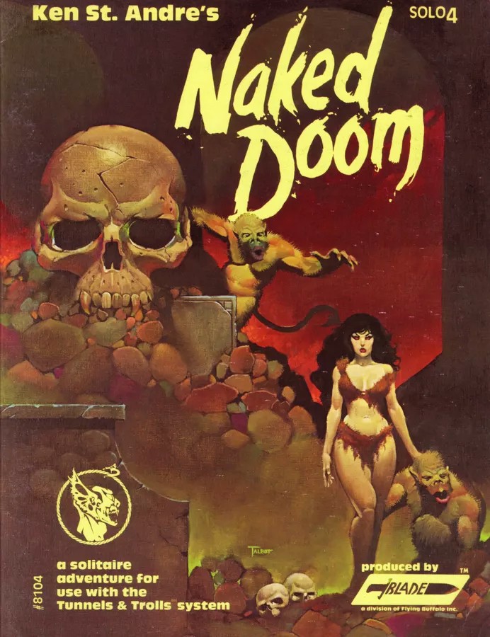 Solo 04: Naked Doom je čtvrté ze série sólo dobrodružství pro Tunnels & Trolls. Hrdina byl lapen ve městě Khazan a je poslán neozbrojen a neoblečen na trestnou „dráhu smrti“. Dobrodružství hráče předem varuje, že se ho bude snažit zabít.