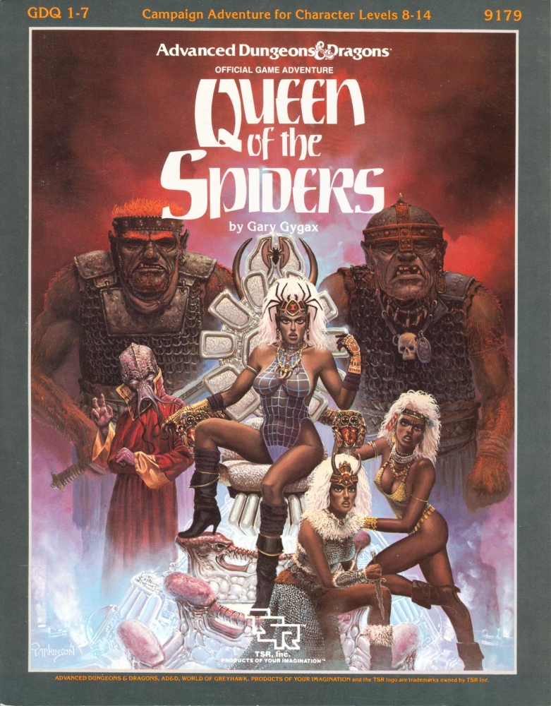 GDQ1–7: Queen of the Demonweb Pits je „supermodul“, který v sobě kombinuje sedm dříve vydaných a oceňovaných dobrodružství pro první edici Advanced Dungeons & Dragons (1978): Gygaxovu trilogii G o obrech (1978), jeho trilogii D o drowech (1978) a závěrečný díl od Davida Sutherlanda Q1: Queen of the Demonweb Pits (1980). Je určený pro postavy na 8. až 14. úrovni. Dobrodruzi vyrážejí na trestnou výpravu proti obrům, kteří terorizují lidské země. V sérii dobrodružství přemůžou jejich náčelníky a zjistí, že konspirace vede až pod zem, kde žije záhadná rasa drowů.