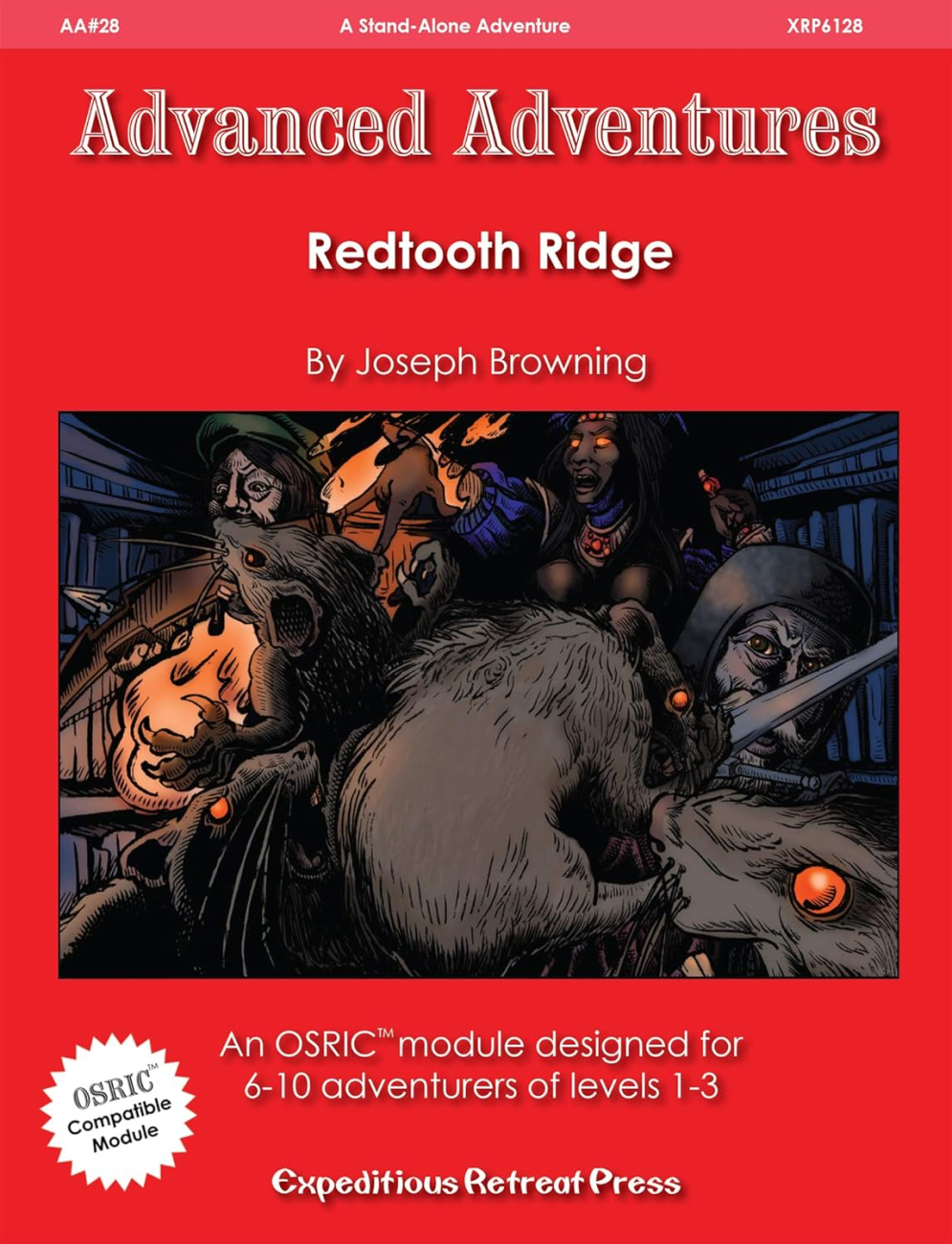AA28: Redtooth Ridge je 12stránkové dobrodružství určené postavám na 1. až 3. úrovni ve hře OSRIC (2006) nebo jiných retroklonech D&D, osmadvacáté ze série AA – Advanced Adventures. Pátrání po ukradeném poháru dobrodruhy zavede na osamocenou stolovou hor. Po úvodním naskriptovaném setkání se zlobrem a gobliny mohou dobrodruzi na temeni hory najít Slonovinový dům, pobořené panské sídlo se sklepením (celkem o 48 místnostech), obývané frakcemi goblinů a šotků, a také mauzoleum plné ghúlů (dungeon o 7 místnostech).