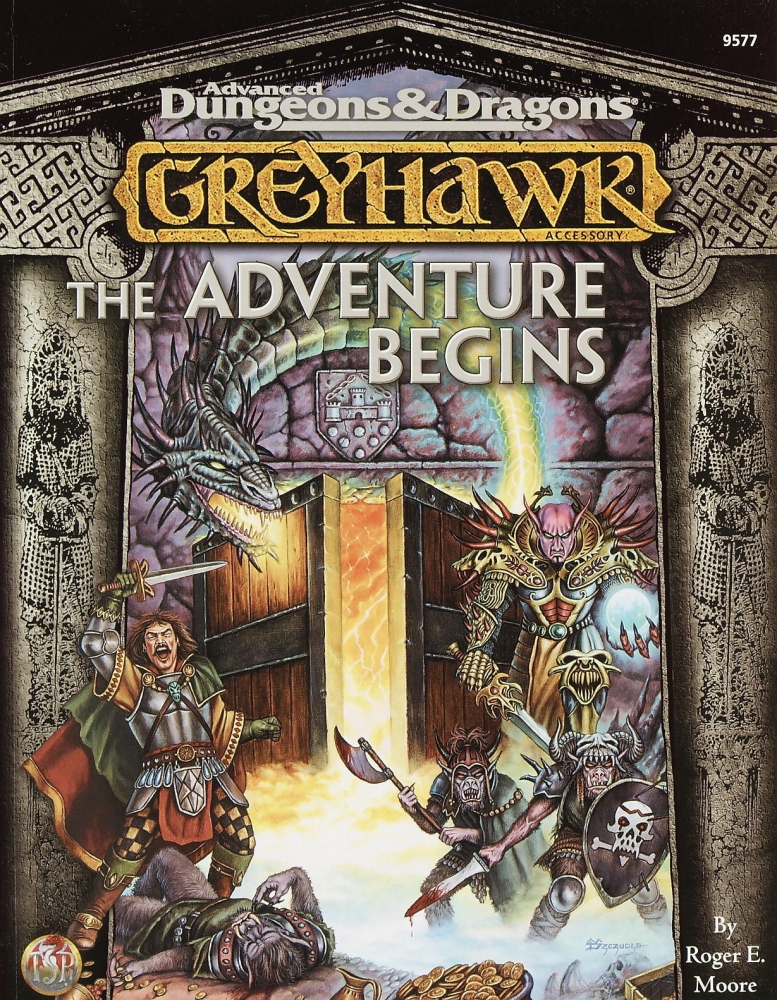 The Adventure Begins je další základní příručka světa Greyhawk pro druhou edici Advanced Dungeons & Dragons (1989). 128stránková kniha představuje (další) reboot tohoto světa. Zatímco předchozí verze, prezentovaná v sadě From the Ashes (1992), přestylizovala svět do žánru temné fantasy, tato příručka opět posouvá reálie o řadu let dopředu (navazuje na něj dobrodružství Return of the Eight (1998)) a vrací světu jeho původní stylizaci do žánru vysoké, hrdinské fantasy. Zhruba polovinu knihy tvoří revidované materiály, které byly dříve publikovány v The City of Greyhawk (1989), zbytek je nový a soustředí se na popis oblasti Flanaess a panství Greyhawk. K příručce je přiložený 16stránkový sešit s mapami.