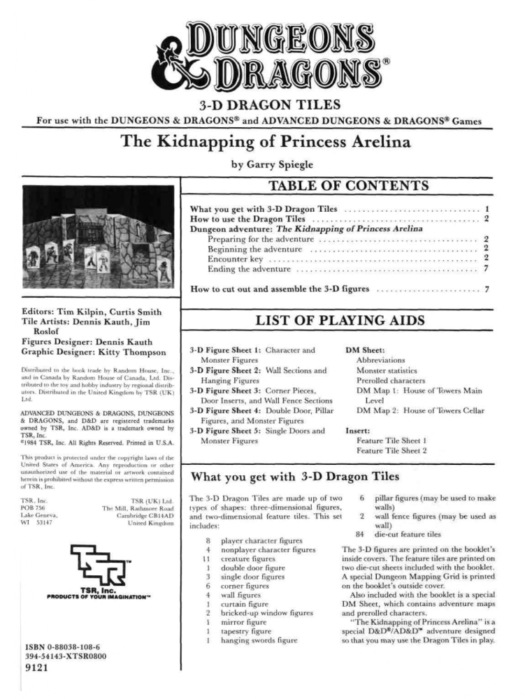 The Kidnapping of Princess Arelina je 8stránkové dobrodružství určené postavám na 2. až 5. úrovni v Basic Dungeons & Dragon ve variantě BECMI (1983) nebo první edici Advanced Dungeons & Dragons (1978), původně součást AC3: 3-D Dragon Tiles (1984). Postavy jsou pověřeny osvobozením unesené princezny Areliny. Prozkoumají přitom dvoupatrový dungeon o 17 popsaných místnostech, který zhusta využívá dvou- a trojrozměrné kartonové dílky.