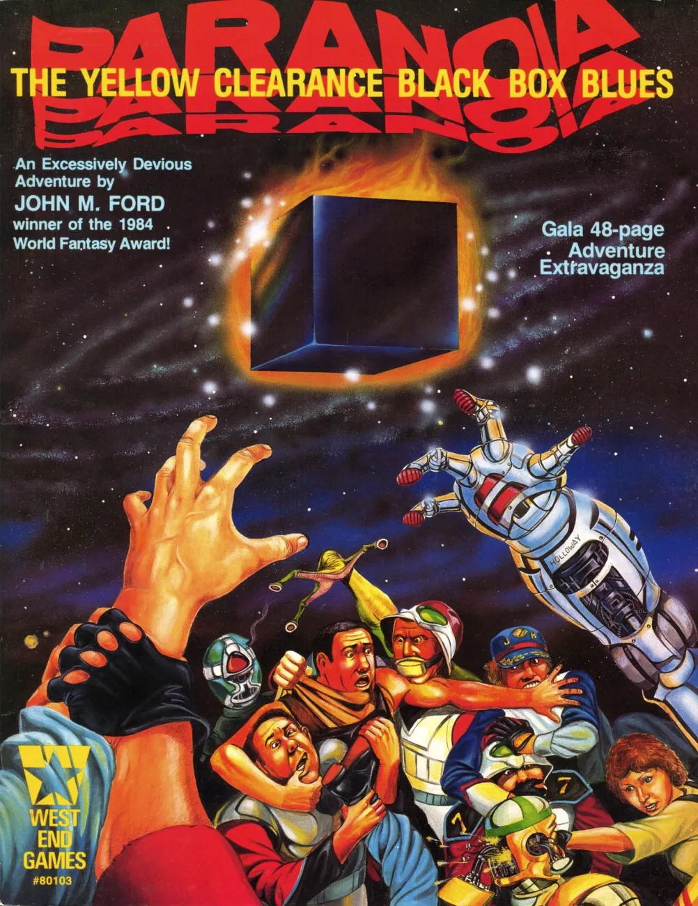 The Yellow Clearance Black Box Blues je 48stránkové dobrodružství pro první edici Paranoie (1984). Je strukturované jako série čtyř nezávislých scénářů spojených jednotícím prvkem – MacGuffinem, záhadnou černou skříňkou, kterou různé frakce (včetně jejich zástupců mezi hráčskými postavami) chtějí za každou cenu získat, což hráčské postavy uvrhne do eskalující série vyšetřování, šarvátek a briefingů i debriefingů. Nakonec se postavy dostanou i Ven a střetnou se se starodávným rock'n'rollovým kultem.