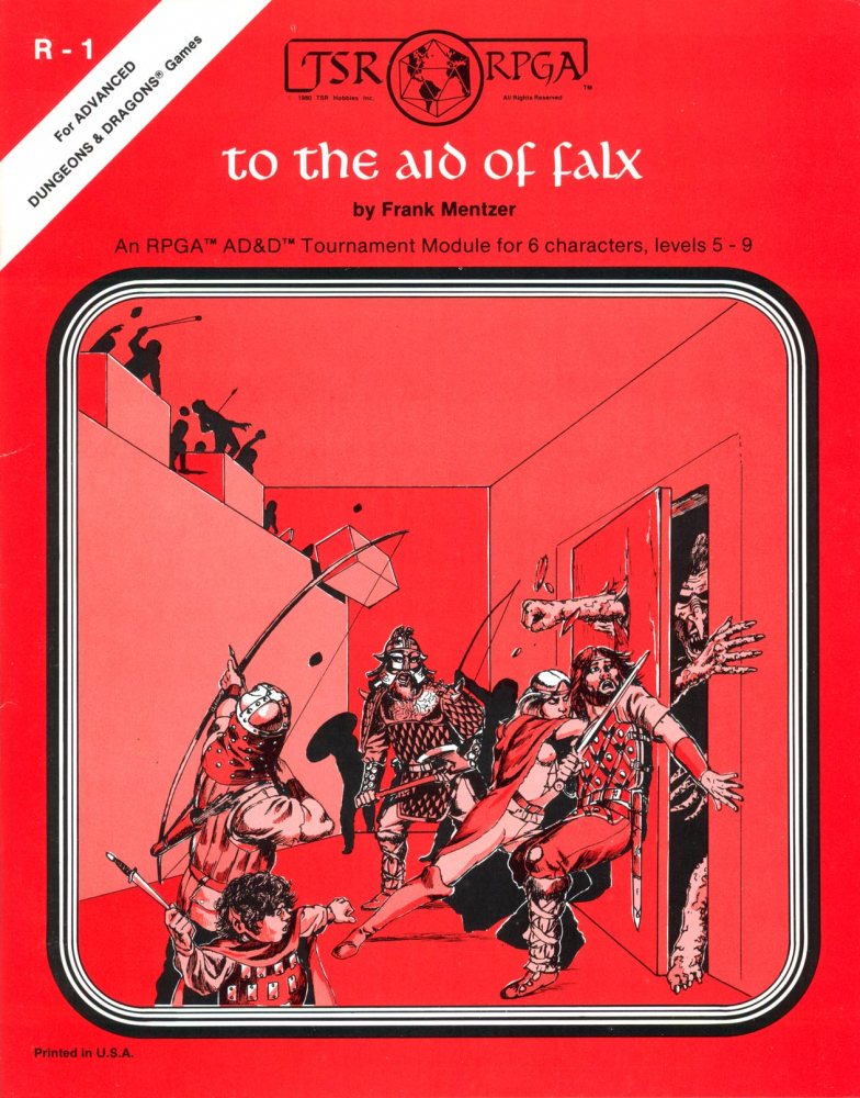 R1: To the Aid of Falx je 16stránkové, původně turnajové dobrodružství pro postavy na 5. až 9. úrovni v Advanced Dungeons & Dragons (1978). Jeho pokračováním je R2: The Investigation of Hydell (1982). Jedná se o menší dungeon se zhruba 20 popsanými lokacemi, ve kterých postavy hledají lektvary pro stříbrného draka. Původně turnajový modul obsahuje i předpřipravené postavy a systém bodování.