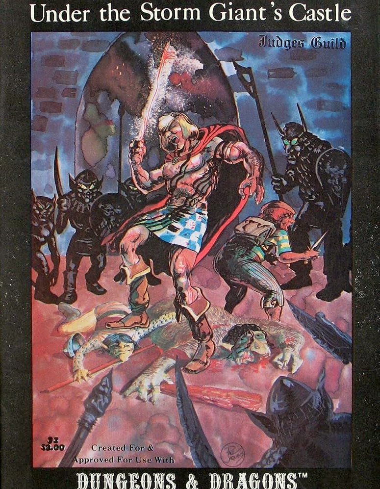 Under the Storm Giant's Castle je 32stránkové dobrodružství pro postavy na vyšších úrovních v původních Dungeons & Dragons (1974). Odehrává se v plovoucím oblaku pod hradem oblačného obra, jemuž jakýsi podivný červ unesl syna. Obr si proto najal dobrodruhy, aby se vypravili do oblačného dungeonu a syna zachránili. Dobrodružství je koncipované jako klasický dungeon plný roztodivných nestvůr (včetně pár unikátních a švihlých, jako jsou třeba balónkoví lidé), pastí a nástrah, rozdělený do šesti menších pater, lehce ozvláštněných tím, že jednotlivé místnosti jsou dutiny v oblaku, s čímž se pojí i pár unikátních mechanik a tématických prvků.