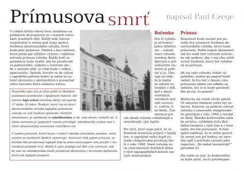 The Valedictorian's Death (do slovenštiny přeloženo jako Prímusova smrť) je hra, ve které hráči rekonstruují události, které vedly ke smrti studenta. Ako základ slúži skutočná ročenka školy, podľa ktorej sa v retrospektíve snažíte zrekonštruovať udalosti, ktoré počas niekoľkých týždňov vyústili v nájdenie mŕtvoly prímusa, teda najlepšieho študenta. Každý hráč sa musí snažiť budiť dojem vraha, aby vo veľkom finále dokázal uniknúť obvineniu a ponechať konečnú vinu na niekom inom. Hráči spoločne vytvárajú scény, na čo majú k dispozícii obmedzený počet bodov plynúcich z atribútov postavy. Presvedčivé hranie a starostlivé rozdeľovanie bodov povedie hráča k víťazstvu, pretože v tejto hre sa naozaj vyhráva. Inovatívny prístup k veci vyniesol pozitívne posudky v Indie RPG Awards.