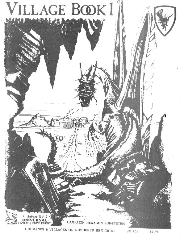Village Book 1 je 62stránkový sešit, který pomáhá rychle vygenerovat a zabydlet fantasy vesnici. Převážnou část tvoří mapky 48 vesnic, znázorněné pomocí Campaign Hexagon Systemu nakladatelství Judges Guild (jedna stránka = jedna mapa jedné vesnice = jeden hex rozdělený na 626 podhexů). Na začátku příručky jsou tabulky umožňující náhodně generovat vlastnosti vesnice, jako jsou typ a jiné charakteristiky hradeb, počet a rozměry ulic, počet a typy obchodů, typ vládního zřízení, budovy, obyvatelstva, náboženství, názvy atd.