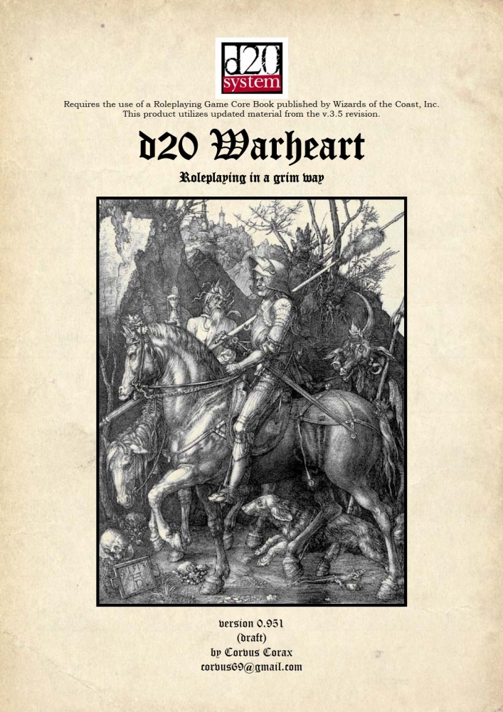 Warheart d20 je variant systému d20 vhodný na hranie v drsnom svete, kde mágia je zriedkavá a fantasy prvky možno zrátať na prstoch málo rúk. Oproti tradičnej podobe systému d20 je k dispozícii krutejší systém súboja (použiteľný aj v historickom fantasy), alternatívny systém mágie, a systém kariér, ktorý nahrádza klasické archetypy povolaní.