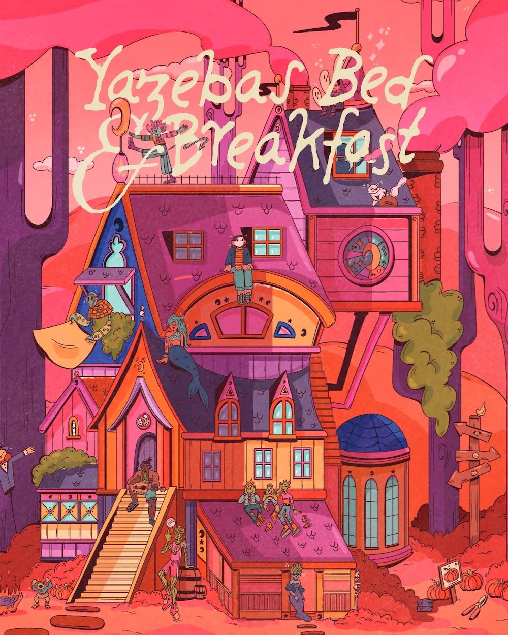 Yazeba's Bed & Breakfast je hra bez kostek a vypravěče představující jednotlivé epizody z každodenního života v magickém penzionu čarodějnice Yazeby, kde čas a prostor nic moc neznamenají, pořád je 15. září a z různých míst průběžně přicházejí noví hosté. Hra – a připravená kampaň v jednom – je strukturovaná do 48 drobných epizod, z nichž každá vystačí na jednu až dvě hodiny hraní. Hráči se v nich postupně ujímají rolí některých ze sedmi dlouhodobých obyvatel nebo zaměstnanců penzionu, ale taky obměňující se plejády 50 výstředních hostů. Na základě promptů z knihy vyprávějí příběhy o jejich každodenních starostech, vztazích a sem tam i nějaké té nadpřirozené polízanici. Hra se soustředí na vztahy, nalézání vlastní identity a otevřeně pracuje s queer tématy.