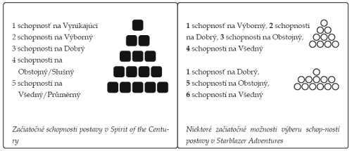 - ak danú schopnosť postava nemá, môže ju hráč buď hádzať ako Slabú (0), alebo ju môže pripísať do kartypostavy na úrovni, ktorú si zvolí (pri zachovaní pyramídy) a hodiť ju na tejto novej úrovni