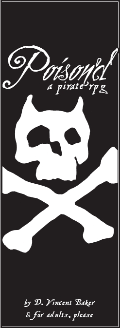 Poison'd je úhľadné 28-stranové PDF predávané Vincentom "Lumpley" Bakerom za 7 USD. Vincent Baker je autorom asi najrozšírenejšej nezávislej RPG, Dogs in the Vineyard, úchylnej taktickej mecha hry s robotmi z LEGO kociek Mechaton a úchylnej RPG o opovrhnutiahodnej spodine satanizmu Kill Puppies for Satan. Očakávania som mal preto vysoké - a Poison'd je kompletná hra, krásne a brutálne pirátske RPG & ozaj pre dospelých. Je vytvorená pod vplyvom Paula Czegeho (autor RPG My Life with Master), Joshua C. Newmana (autor RPG Shock: Social Science Fiction), Emily Care Boss (autorka RPG zameraných na medziľudské vzťahyBreaking the Ice a Shooting the Moon) a silne stavia na hrách Mountain Witch**, Steal Away Jordan, InSpectres a Sorcerer.