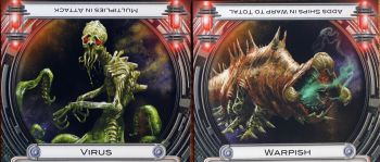 - Vírus pri stretnutí namiesto spočítania útočnej karty a lodí, ktoré sú na jeho strane tieto čísla vynásobí a Warpish-nekromancer pripočítava aj lode, ktoré mu boli zlikvidované.