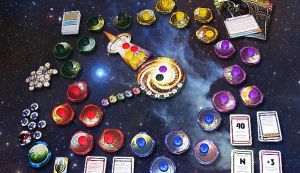 - Červiu dieru, ktorá v každom kole ukazuje, na ktorú planétu sa útočí a kto stojí na akej strane konfliktu