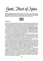 Gont, Nest of Spies je sandboxový modul popisující pašerácké přístavní město Gont situované do světa Erillion. Vyšel v druhém čísle zinu Echoes From Fomalhaut (2018) a je určený pro OSRIC (2006), potažmo jiné oldschoolové retroklony. Na celkem 18 stranách formátu A5 popisuje titulní město, jemuž dominují zájmy kupců i pašeráckého podsvětí, zatímco šlechta ve starých palácích upadá. Samotné město je tvořeno 21 popsanými lokacemi, do nichž jsou umístěné různé služby, nehráčské postavy a háčky na dobrodružství. Pod ním se nachází městská sklepení – dungeon nazvaný Down the Smuggler's Walk, tvořený 40 popsanými lokacemi. Město neobsahuje žádnou konkrétní dějovou linku, je ale protkané různými příležitostmi k dobrodružství jak přímo ve městě (a jeho podzemí), tak těmi vedoucími do širšího světa Erillion.