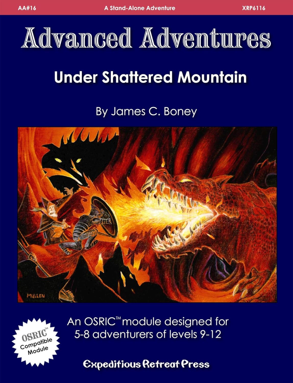 AA16: Under Shattered Mountain je 12stránkové dobrodružství určené postavám na 9. až 12. úrovni ve hře OSRIC (2006) nebo jiných retroklonech D&D, šestnácté ze série AA – Advanced Adventures. Dobrodruzi v něm sestoupí do spletité sítě chodeb pod povrchem vyhaslé sopky. Desítky mil dlouhé tunely, znázorněné schematickou hexovou mapou, propojují jedenáct jeskyní. Deset z nich jsou povšechně popsané minidungeony o nejvýše několika místnostech, obývané troglodyty, trolly, salamandry, kamennými obry nebo párem rudých draků. Jedenáctá jeskyně je popsána podrobněji – tvoří ji dvoupatrový, uměle zbudovaný dungeon o celkem 21 místnostech, sídlo ďábla Šeta (Sheth) a jeho suity pekelníků, kteří plánují obnovit činnost sopky.