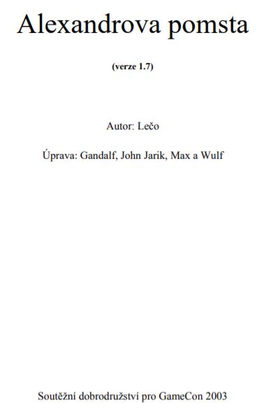 Jde o soutěžní dobrodružství hrané při Mistrovství v DrD na Gameconu 2003. Je rozdělené na tři části, každá obsahuje hodnotící kritéria pro rozhodnutí, které skupiny postoupí do další části.