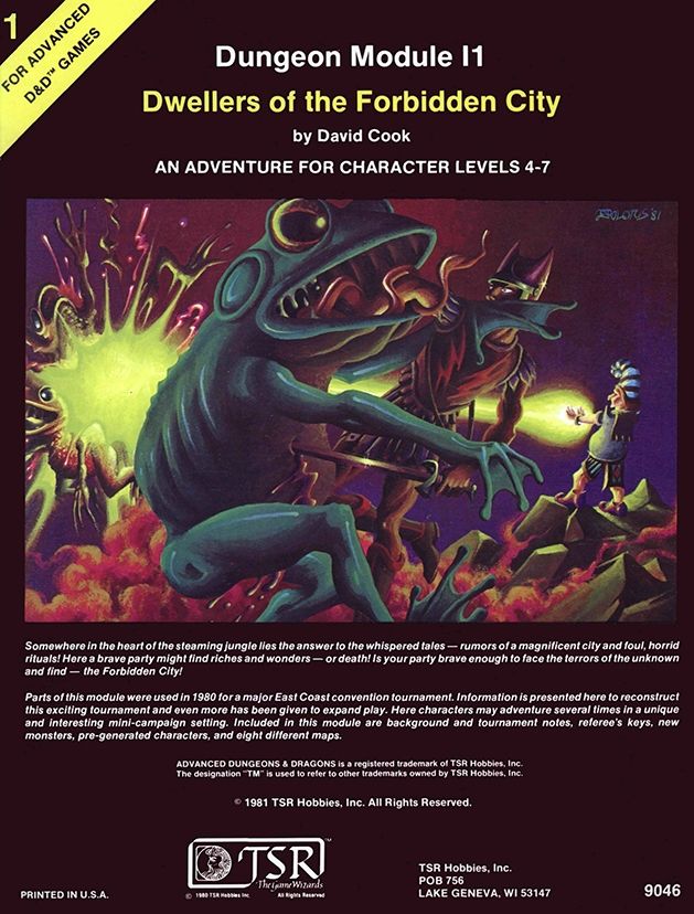 I1 Dwellers of the Forbidden City je dobrodružství pro družinu mezi 4. a 7. úrovní. Hráčské postavy se doslechnou o banditech přepadávajících karavany v džungli. Stopa je zavede do ztraceného města v pralese. Jedná se o kombinaci několik menších dungeonů a dobrodružných míst. Knížka má 28 stran plus přílohy (mapy města a dungeonů).