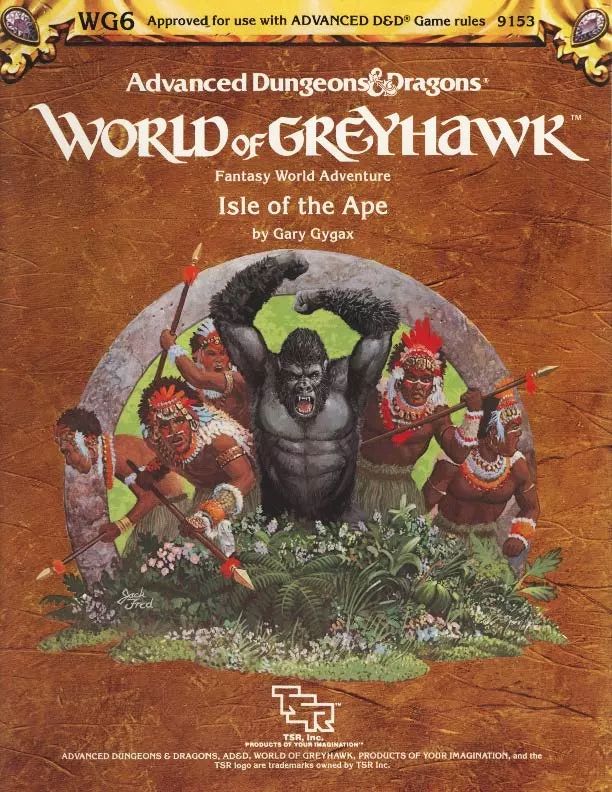WG6: Isle of the Ape je dobrodružství pro postavy na 18. a vyšší úrovni v AD&D 1e, zasazené do světa Greyhawk. Postavy jsou přeneseny na ostrov inspirovaný příběhem o King Kongovi. Prozkoumávají džungli koncipovanou jako hexovou mapu ostrova, po které jsou rozmístěné extrémně obtížné souboje a dílčí setkání nebo minidungeony. Na závěr je čeká souboj s kolosálním lidoopem.