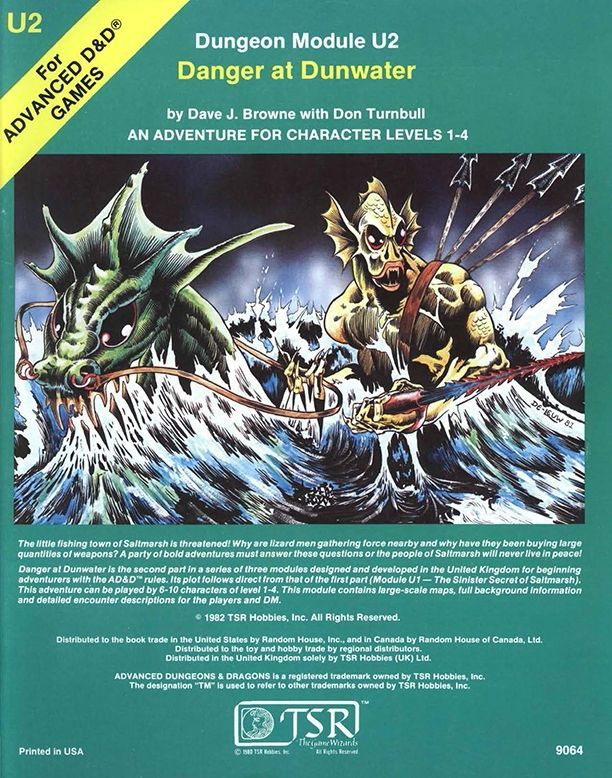 U2: Danger at Dunwater je druhé ze série tří dobrodružství, která jako svá první připravila britská pobočka nakladatelství TSR. Je určené pro postavy na 1. až 4. úrovni. Navazuje na děj předchozího dobrodružství U1: The Sinister Secret of Saltmarsh (1981). Kratší pátrání a cestování divočinou je zakončeno doupětem lidoještěrů – jeskyni o zhruba 50 popsaných místnostech. Dobrodružství klade velký důraz na vyjednávání. Děj pokračuje závěrečným dílem trilogie, U3: The Final Enemy (1983).